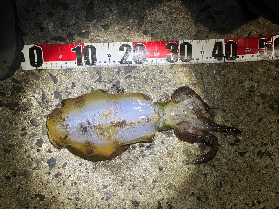 上がって来たのは同長25センチオーバーのアオリイカ。