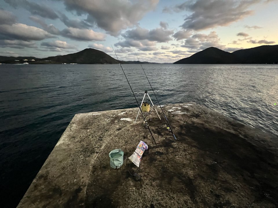 仮眠する前に吹いていた風は若干弱まっていたので、堤防の先端に竿を出す事にした。
