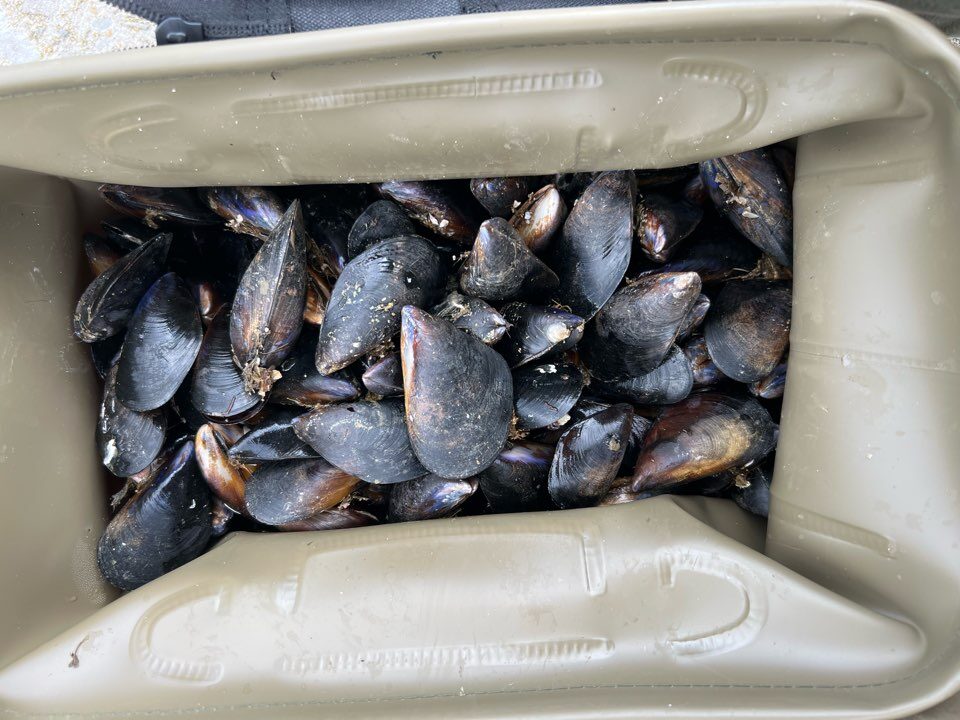 それでも何とか潮の流れが穏やかな場所を探しムール貝を落とす。