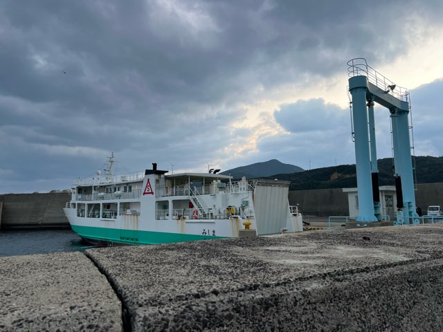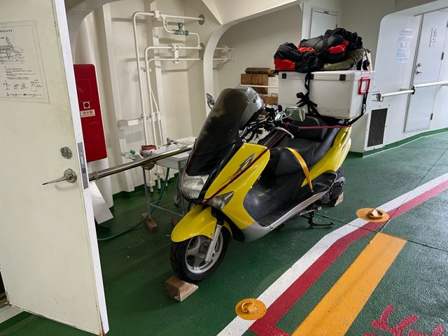 もう一度船内アナウンスを聞くと友住港に到着していたので、急いで荷物をまとめてバイクを載せてある車両甲板に移動。