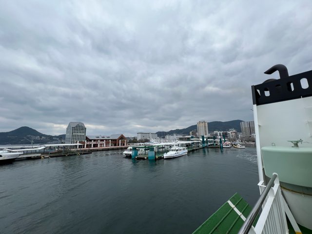 船内で弁当を食べていると13時30分定刻通りフェリー「みしま」は佐世保港を出港。