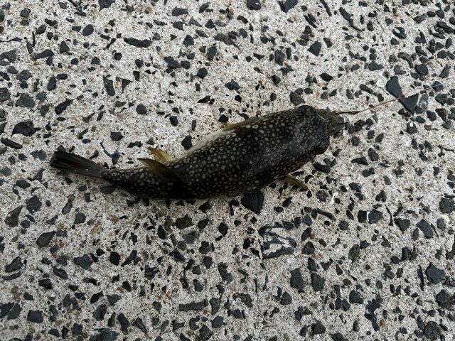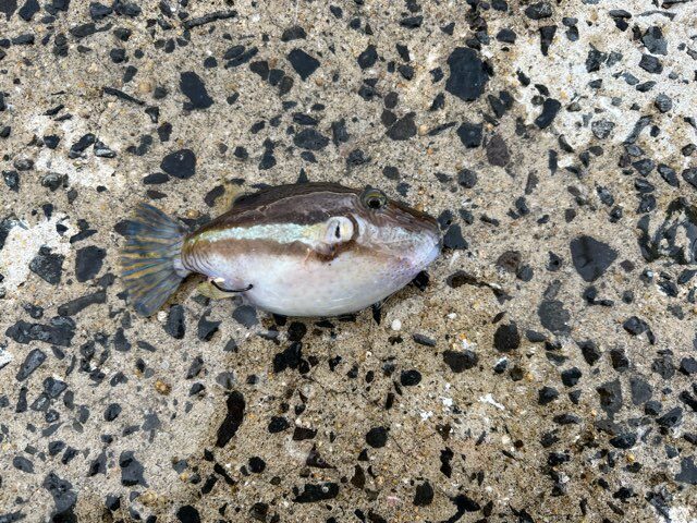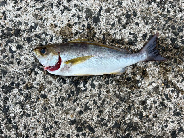 しかしこの後、遠投カゴ釣りを続けたかったが目の前を小型の漁船が1隻通って行ったので、迷惑になるといけないので遠投カゴ釣りは中断しました。