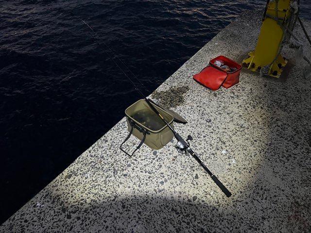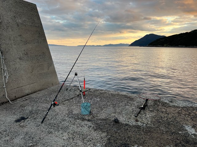 しかし、夜中は全くアタリが無くて朝マズメに1回だけアタリが出て1匹イサキが釣れたところでエサが無くなり遠投カゴ釣りは終了。
