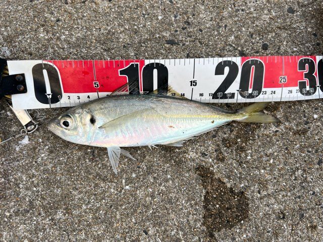 夢の50センチオーバーの巨大アジ釣って見たかったですが、残念な事に尺アジすら釣れずに時合い終了。