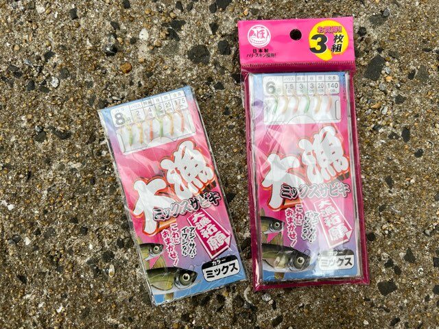 サビキは愛用しているタカミヤの大漁サビキのミックスカラーだが、サイズは1番大きい物で8号までしか持っていない。