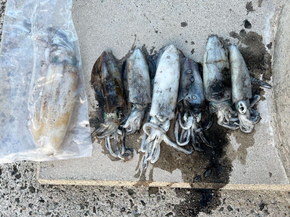 しかし、地合いを知る合図にはなってくれたのでこの後豆アジにエサを切り替えさらに2杯アオリイカを釣り上げる事が出来た。