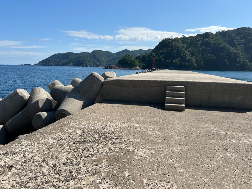 何処で釣りをするか悩みましたが、島の南西側にそこそこ水深があって良い雰囲気の堤防が見つかったので、ここで竿を出してみる事にしました。