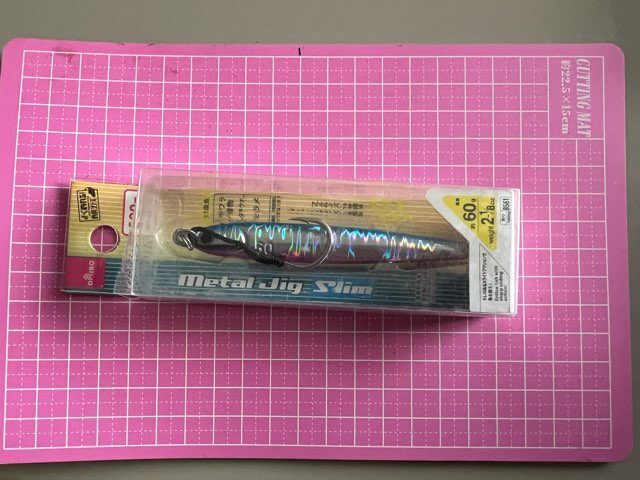 使用したのはダイソーで過去に購入したブルーピンクのメタルジグ。