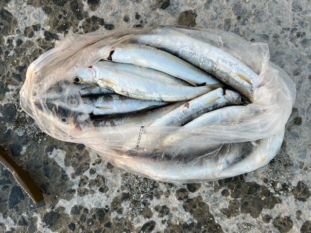 この後、朝3時間で面白いようにカマスが釣れ続けて30匹程お持ち帰りする事にしました。