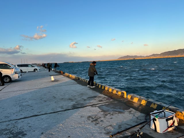 人気釣り場なので釣り座が空いて無い事もありますが、この日は小雨が降っている上に、明日強風が吹く予定なので釣り人が少ない。